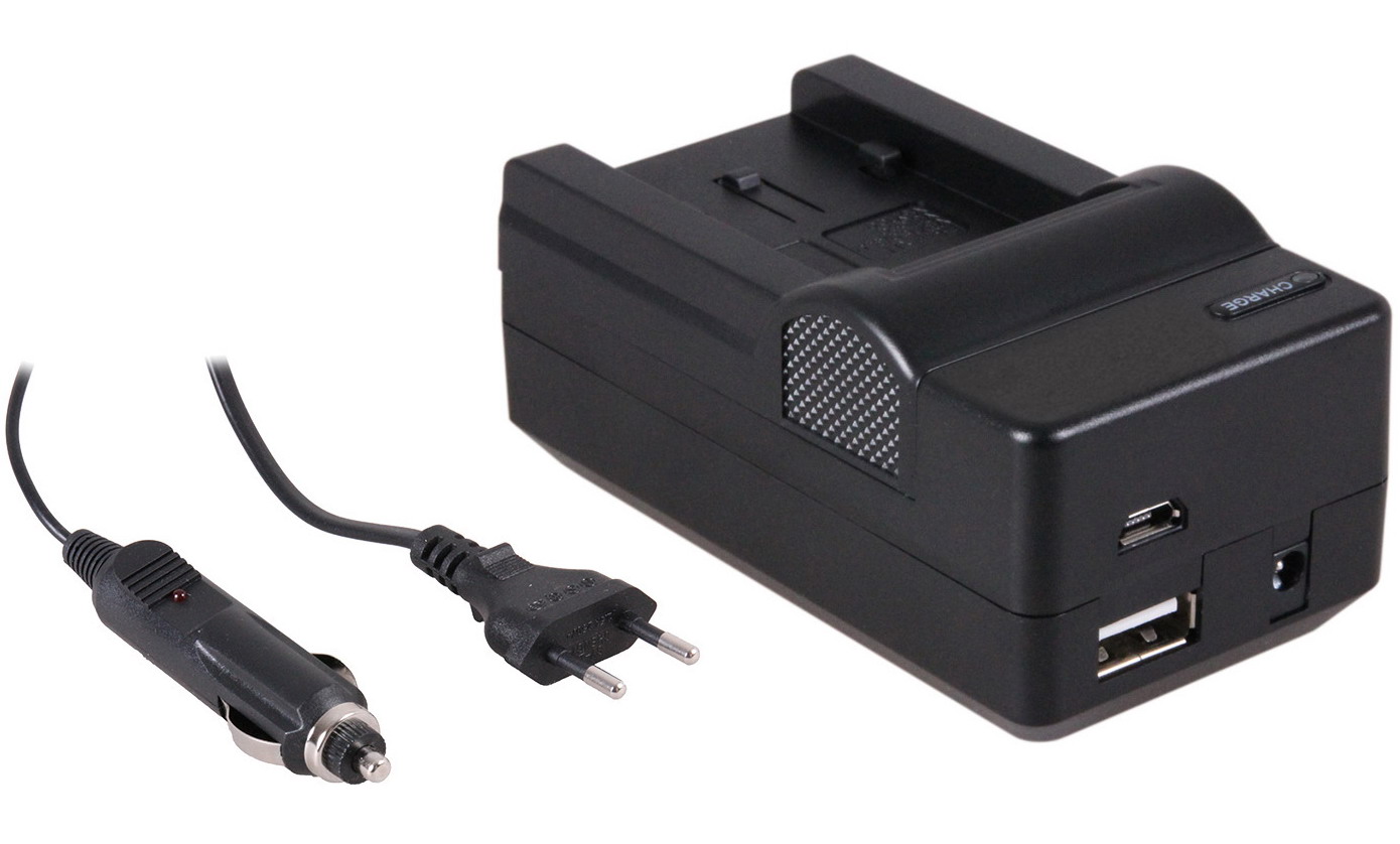 4-in-1 lader voor de Panasonic VW-VBT190 / VW-VBT380 accu’s. Opladen kan via het stopcontact en in de auto. Via de microUSB poort laadt u uw accu via USB (bijv. via PC of Powerbank) en via de USB poort laadt u tegelijkertijd een smartphone mee!
