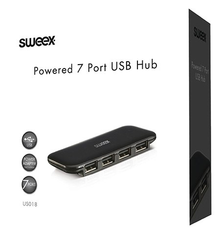 USB-hub voorzien van voeding. 7 USB 2.0 poorten. Netvoeding en aansluitkabel worden meegeleverd. Deze hub is geschikt voor alle USB 2.0-compatible apparaten en is backwards compatible met USB 1.1 en 1.0