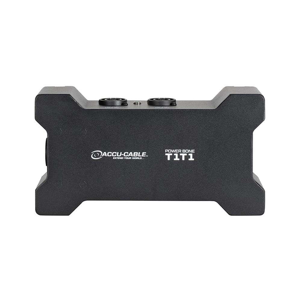 Deze Accu-Cable Power Bone T1T1 dient als handige stroombron/verdeler voor installaties. Hij heeft 4x Seetronic IP65 vergrendelbare PowerCON TRUE1 uitgangen en 2x USB-aansluitingen USB1: 5V-2.1A & USB2: 5V-1.3A.