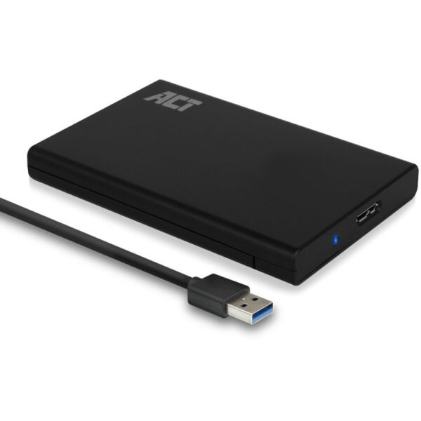 De AC1215 Schroefloze 2.5 inch SATA HDD/SSD Behuizing is de ideale oplossing voor het opslaan en delen van je favoriete video’s, foto’s en andere bestanden. Het schroefloze ontwerp zorgt ervoor dat je heel eenvoudig een 2.5 inch HDD of SSD inbouwt. Met de USB 3.2 Gen1-aansluiting haal je een maximale doorvoersnelheid tot 5Gbps. USB 3.2 Gen1-ondersteuning De AC1215 heeft een snelle USB 3.2 Gen1-verbinding. Samen met de ondersteuning van UASP (USB Attached SCSI-Protocol) kun je data met een maximale snelheid tot 5Gbps overzetten. Een USB 3.2 Gen1-kabel wordt meegeleverd. Schroefloze montage Door het schroefloze ontwerp van de AC1215 is het installeren van een harde schijf of SSD wel heel gemakkelijk. Installeer in 3 stappen een SATA HDD of SSD. Open de behuizing, verbind de harde schijf met de SATA connector en sluit vervolgens de behuizing. De AC1215 is nu klaar voor gebruik. De meeleverde USB-aansluitkabel voorziet de harde schijf van stroom via de USB-poort van de notebook of pc. Ook geschikt voor USB 2.0-aansluiting Geen USB 3.2 Gen1 (USB 3.0)-poort op je laptop of pc? Sluit de ACT AC1215 gewoon aan op een USB 2.0-poort.