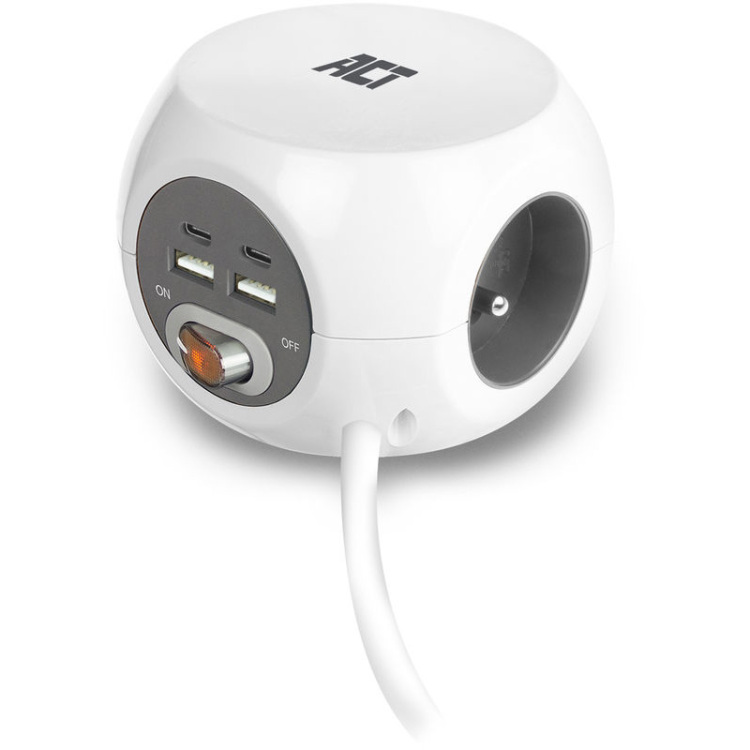 Sluit drie elektrische en vier USB-apparaten tegelijkertijd aan op de AC2435 Kubusvormige Stekkerdoos. De USB-poorten leveren samen 3,4A/17W en zijn beschermd tegen te hoge stroom en kortsluiting. De drie stopcontacten zijn uitgerust met kinderbeveiliging. Plaats de Kubusvormige Power Block op je bureau. De meegeleverde kleefpad zorgt dat de Power Block netjes blijft liggen. Met de lichtgevende aan/uit-schakelaar kun je alle stopcontacten en USB-poorten in één keer aan- of uitzetten. Drie stopcontacten en vier USB-poorten De kubusvormige stekkerdoos heeft drie stopcontacten voor het aansluiten van elektrische apparaten. De vier USB-poorten (2x USB-C en 2x USB-A) zijn geschikt voor het laden van smartphones en tablets met een maximale belasting van 3,4A/17W. Alle stopcontacten en USB-poorten met één schakelaar aan- of uitzetten Schakel de hele stekkerdoos in één keer aan of uit met de lichtgevende schakelaar. Goed voor je energierekening én voor de veiligheid. Je voorkomt sluipgebruik door de apparaten allemaal uit te schakelen. Ruimtebesparend ontwerp De AC2435 heeft een kubusvorm en neemt hierdoor weinig plaats in op je bureau. Door het handige ontwerp zijn alle stopcontacten en USB-poorten gemakkelijk te gebruiken. De meegeleverde kleefpad zorgt ervoor dat de stekkerdoos netjes op de plek blijft liggen. Beveiliging tegen te hoge stroom en kortsluiting voorzien voor kinderbeveiliging De USB-poorten zijn beveiligd tegen te hoge stroom en kortsluiting. De stopcontacten zijn allemaal voorzien van kinderbeveiliging.