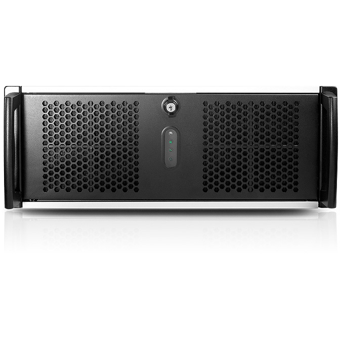 De zwarte Chenbro RM42300F1 is een robuuste en uitbreidbare behuizing voor professionele en ruimtebesparende serveroplossingen.