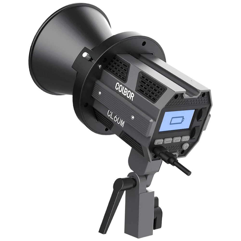 De ultracompacte, lichte en draagbare COLBOR CL60M Daglicht LED Monolight beschikt over een 5600K COB LED-lampkraal met een indrukwekkende CRI-beoordeling van 97. Deze heldere 65W LED-lichtbron levert 3243 lux op 1 meter afstand en dit neemt toe tot 22.540 lux op dezelfde afstand wanneer de meegeleverde reflector wordt gebruikt. De monolight is uitgerust met 7 ingebouwde speciale effecten voor creatieve verlichtingssimulaties en een gemakkelijk leesbaar LCD-scherm voor intuïtieve bediening. Aanpassingen kunnen lokaal op het apparaat zelf worden gedaan of vanaf een afstand via een app op je smartphone.