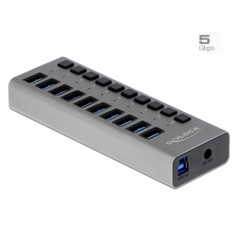 Deze stabiele USB-Delock-hub in metalen behuizing wordt op een computer via de USB type A-aansluiting aangesloten. Hij breidt de computer uit met 10 USB type-A-aansluitingen. Aangesloten apparaten,…