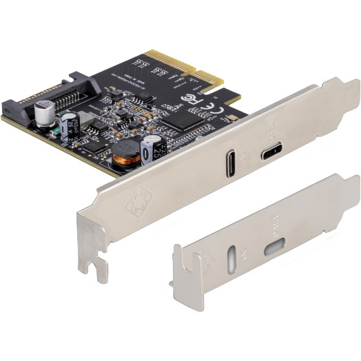 De PCI Express x4 naar 1x USB-C 20Gbps + 1x USB-C PD 20 Watt PCI Express kaart van Delock breidt de PC uit met één externe USB-C 3.2 poort. Verschillende USB-apparaten, zoals dockingstations, kaartlezers, externe behuizingen enz. kunnen op de kaart worden aangesloten. De USB Type-C PD 20Watt poort ondersteunt de Power Delivery functie en verschillende snellaadtechnologieën. Hierdoor kunnen aangesloten apparaten zoals smartphones, tablets en zelfs laptops worden opgeladen.