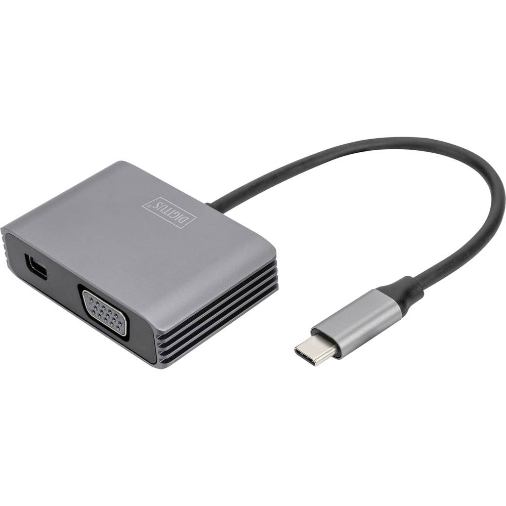 Digitus DA-70825 Mini-displayport / USB-C / VGA Adapter [1x USB-C – 2x Mini-DisplayPort bus, VGA-bus] Zwart Afgeschermd, Rond 0.2 m