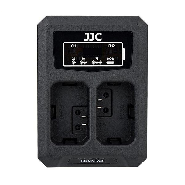 De JJC DCH-NPFW50 dual acculader geeft je de mogelijkheid om twee accu’s gelijk op te kunnen laden.