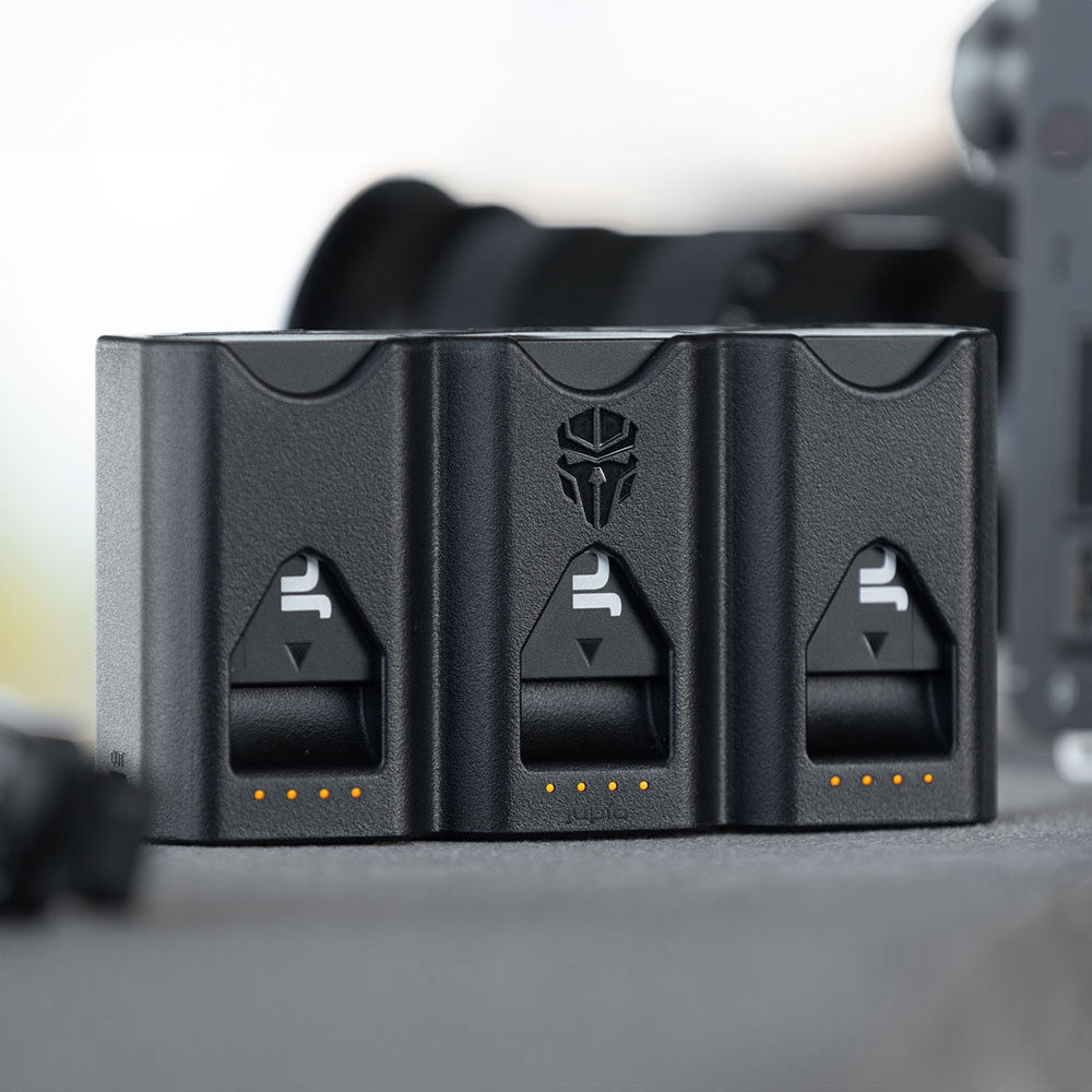 Snelle oplader voor het tegelijkertijd opladen van drie Sony NP-FZ100 accu’s – ingebouwd geheugenkaartopbergsysteem voor 3x CFX, 3x SD en 2x micro-SD