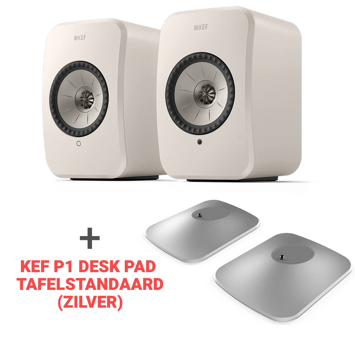 KEF Combi Deal LSX II LT – wit + KEF P1 Desk pad tafelstandaard – zilver