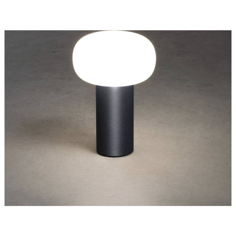 Hoogwaardige tafellamp van aluminium met sterke oplaadbare lithium-ion-accu. Laadplatform met USB-kabel. Lamp in kleur verstelbaar en dimbaar.