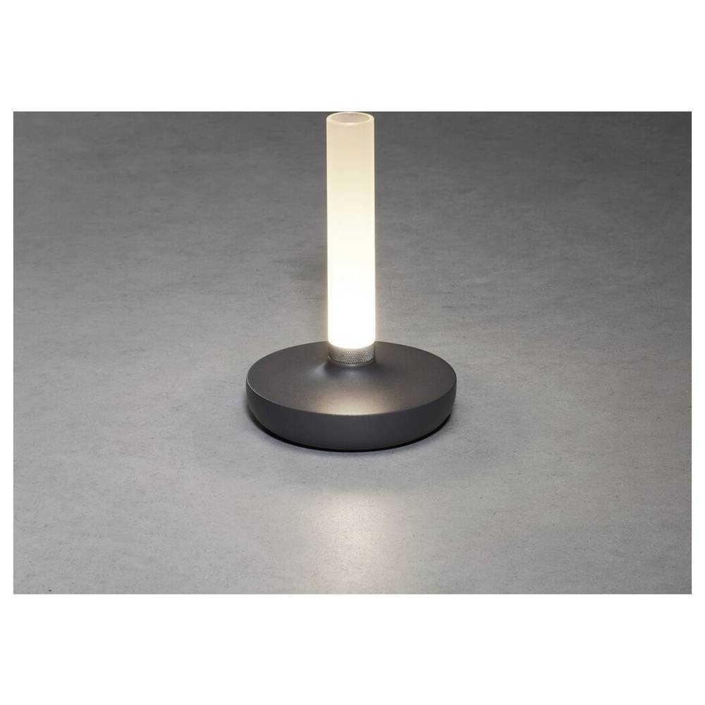 Hoogwaardige tafellamp van aluminium met sterke oplaadbare lithium-ion-accu. Laadplatform met USB-kabel. Lamp in kleur verstelbaar en dimbaar.