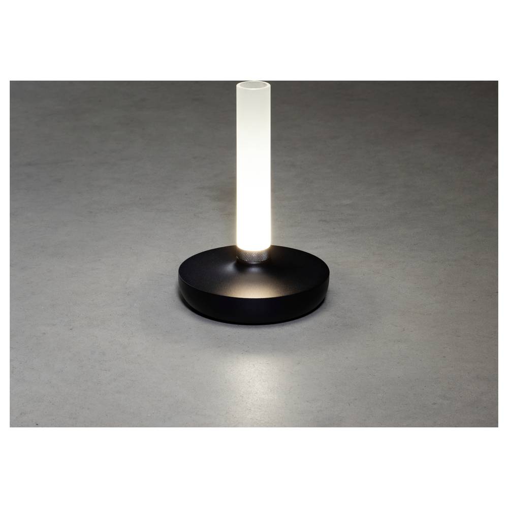 Hoogwaardige tafellamp van aluminium met sterke oplaadbare lithium-ion-accu. Laadplatform met USB-kabel. Lamp in kleur verstelbaar en dimbaar.
