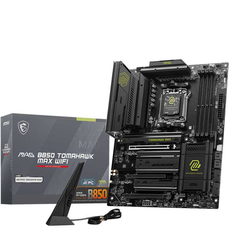 Het MSI MAG B850 TOMAHAWK MAX WIFI moederbord is gebaseerd op de AMD B850 chipset en ondersteunt AMD processoren met een AM5 socket. Dit moederbord heeft vier dual-channel DDR5 DIMM-sleuven voor maximaal 256 GB RAM. Andere kenmerken zijn één PCIe 5.0 x16 slot, één PCIe 4.0 x16 slot en één PCIe 3.0 x1. De MSI MAG B850 TOMAHAWK MAX WIFI beschikt over 8-kanaals geluid, een 5 Gigabit LAN interface, Wi-Fi 7, Bluetooth, vier SATA3 poorten, vier M.2 poorten, vier USB-A 2.0, twee USB-A 3.2 (10 Gbit/s), drie USB-C 3.2 (10 Gbit/s) interfaces en één USB-A 3.2 (5 Gbit/s) interface.