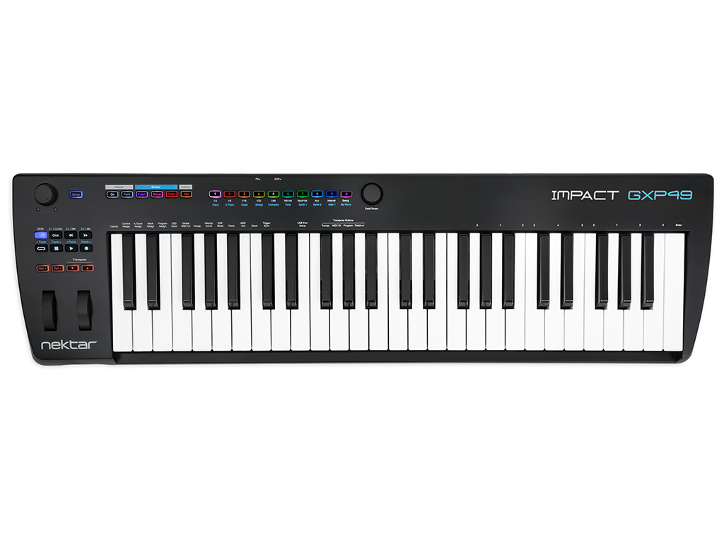 De Nektar Impact GXP49 is een USB MIDI-controllerkeyboard met 49 semi-gewogen toetsen en aftertouch. Het beschikt over een real-time repeat engine, Nektarine plugin patchbeheer en Nektar DAW-integratie.