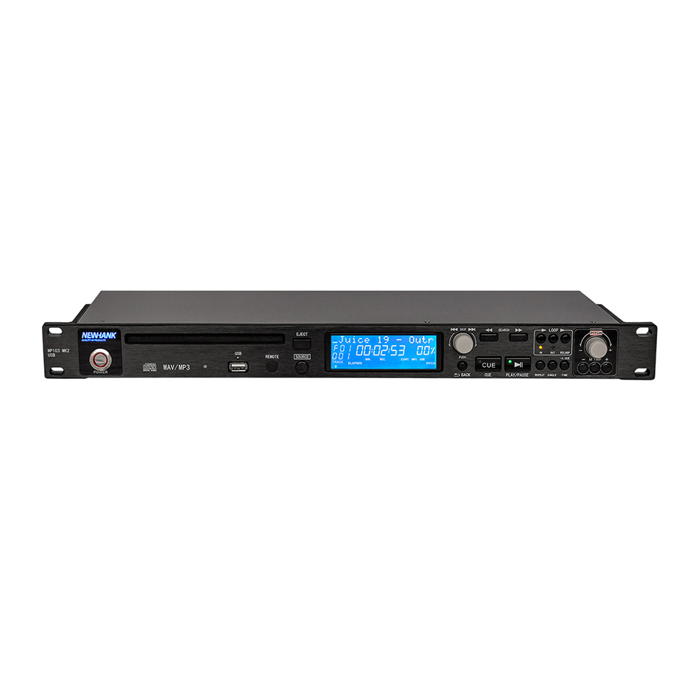 Met de NewHank MP103 MK2 USB kun je MP3’s en WAV’s afspelen van zowel een cd als een USB-opslagapparaat. Het is een 1HE speler die gemakkelijk in een 19 inch rack of flightcase te bouwen is vanwege zijn rackoren.