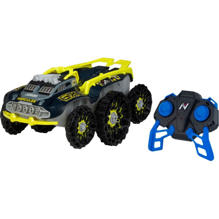 Ontketen de kracht van Hercules met Nikko RC. Deze 6-wielige terreinwagen kan alle terreinen aan, zelfs onder de zwaarste omstandigheden – op ruwe oppervlakken, zwaar terrein en over obstakels. Hercules de kracht om snel hellingen van 45% te beklimmen. Aangedreven door een formidabele USB oplaadbare 6,4V LiPo batterij, raas je weg over met een snelheid van 15 km/u met de precieze besturing van Nikko’s 2,4GHz afstandsbediening. Zet je schrap voor adembenemende 360-graden spins en herculische stunts, en verhef je RC ervaring tot legendarische proporties met de Hercules van Nikko RC.