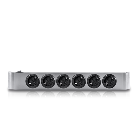 . Hoogwaardig uitgevoerde, meervoudige stekkerdoos met zes afzonderlijke aansluitpunten, ondergebracht in een stevige aluminiumbehuizing. De kindveilige stopcontacten met randaarde zijn gemakkelijk bereikbaar dankzij de plaatingshoek van 45°. Bovendien beschikt de Powersocket 505 over een verlichte veiligheidsschakelaar en twee USB-laadaansluitingen. Een 1,5 m lang netsnoer wordt meegeleverd.