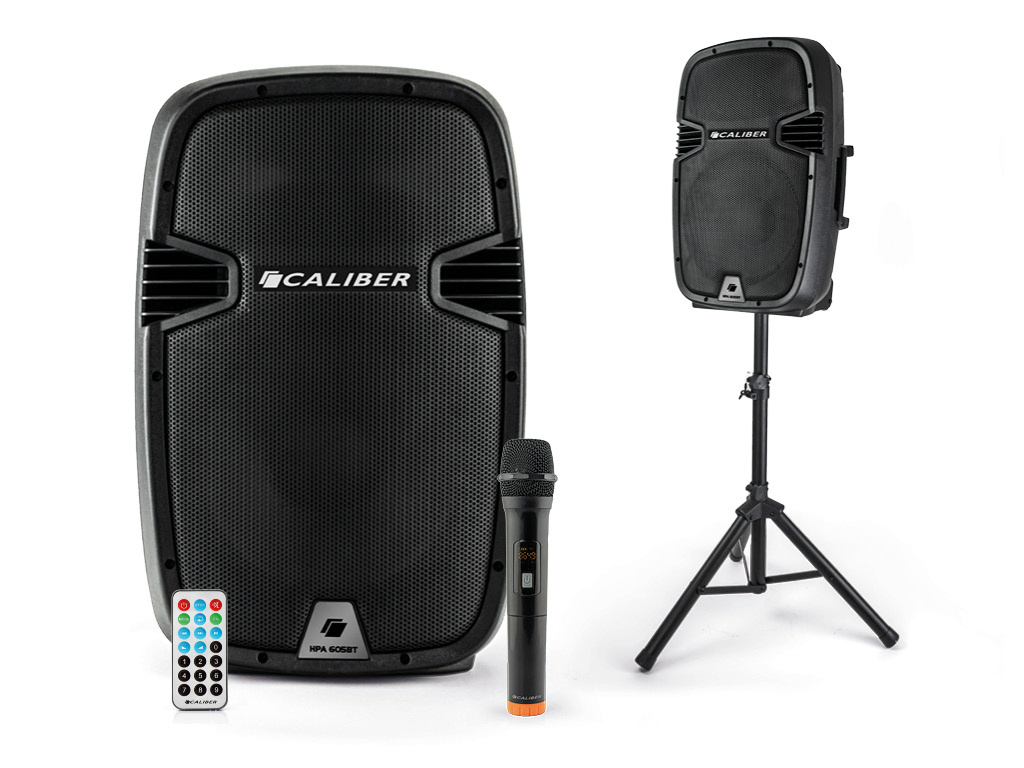 Maak ieder feestje compleet met deze Caliber Party-Large HPA605BT bluetooth party speaker. Dankzij de meegeleverde draadloze microfoon en karaoke sing-along functie ben je ook direct voorzien van een karaoke set. Verbind gemakkelijk je smartphone of laptop met de muziek box via bluetooth en loop met het apparaat tot wel 10 meter weg. Ook via USB en SD kun je muziek laten afspelen. Met 250 watt vermogen heb je altijd genoeg volume voor een goed feestje. De muziek bedien je gemakkelijk met de bedieningsknoppen of afstandsbediening.