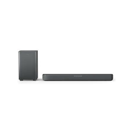 Ontdek de Philips Soundbar TAB5309/10, een krachtig 2.1 kanaal-systeem dat uw audio-ervaring naar een hoger niveau tilt. Met een maximale muziekbelasting van 240 watt biedt deze soundbar een indrukwekkende geluidsweergave, waarbij het aparte actieve subwoofer zorgt voor diepe basgeluiden die uw films en muziek tot leven brengen. Dankzij de Bluetooth audio streaming met A2DP-standaard kunt u eenvoudig draadloos verbinding maken met uw smartphone of tablet. Geniet van een ongeëvenaarde geluidskwaliteit met ondersteuning voor Dolby Digital, Dolby Digital Plus, DTS en DTS Virtual:X, die allemaal samenwerken om een meeslepende luisterervaring te creëren. De soundbar is voorzien van diverse aansluitmogelijkheden, waaronder één digitale optische ingang, één HDMI-uitgang met Audio Return Channel (ARC), en een USB-aansluiting. De meegeleverde afstandsbediening maakt het eenvoudig om uw geluidsinstellingen te beheren zonder dat u op hoeft te staan. Met afmetingen van 76.6 cm breed, 6.73 cm