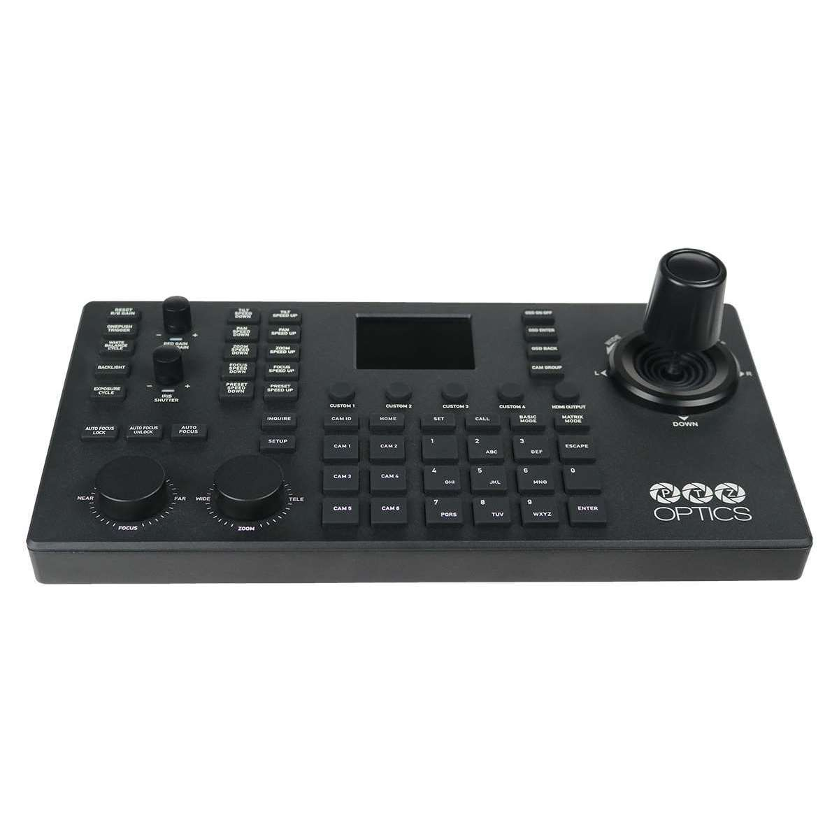 Bedien tot 28 PTZ-camera's met NDI, IP of serieel met de SuperJoy NDI|HX/IP & Serial PTZ Camera Joystick Controller van PTZOptics. De SuperJoy biedt joystick- en knopbediening voor maximaal 28 PTZ-camera's, in vier groepen van elk zeven camera's, met ondersteuning voor NDI-, VISCA-, VISCA-over-IP-, Pelco-P- en Pelco-D-protocollen via IP en seriële RS- 232-, RS-422- en RS-485-communicatie. Het stelt u in staat om de snelheid van uw pan-, tilt-, zoom- en lock-bewegingen te regelen en heeft een LCD-scherm.