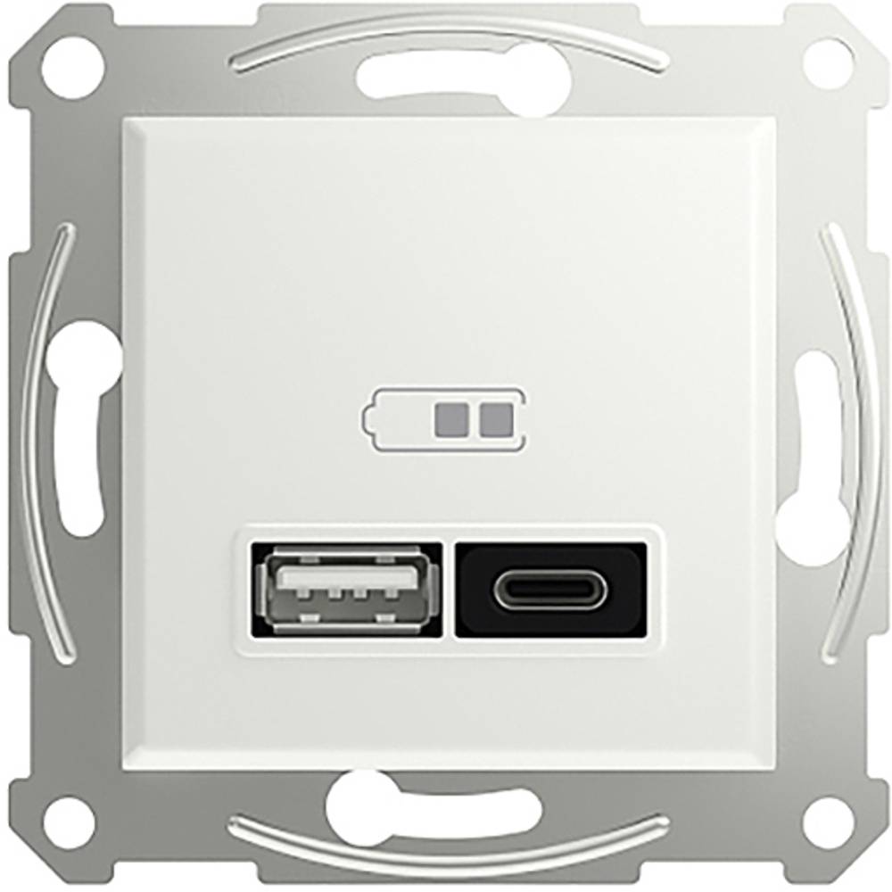 Dit Schneider Electric apparaat is een USB-laadstation type A+C ® van de designlijn Asfora, schroefloos zonder frame in de kleur wit. Het beschikt over een 5V 1,5A USB type A en 20V 3A USB type C ®….