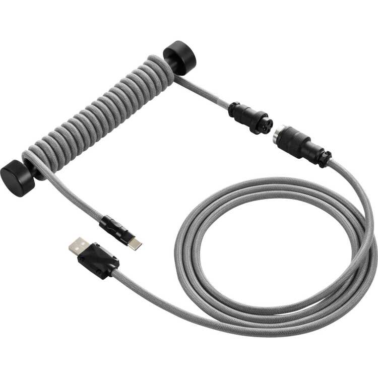 De SKILLER SGK50 Aviator kabelset geeft het SKILLER SGK50 S4 gaming toetsenbord een stijlvolle uitstraling. De spiraalkabel slaat in elke opstelling een bijzonder mooi figuur en behoudt dankzij de metalen kabelstang ook na lang gebruik zijn vorm. De Aviator-aansluitingen met hun schroefdraad zorgen voor een verbinding die voortdurend stabiel is. Dankzij de geïntegreerde kabelstang behoudt de kabel zijn opgerolde vorm, zelfs na langdurig gebruik en veelvuldige beweging van het toetsenbord. De SKILLER SGK50 Aviator kabelset wordt aangesloten op het toetsenbord via USB-C en op de computer via USB-A. De aviator-aansluitingen hebben een schroefdraad die altijd voor een stabiele verbinding zorgt.