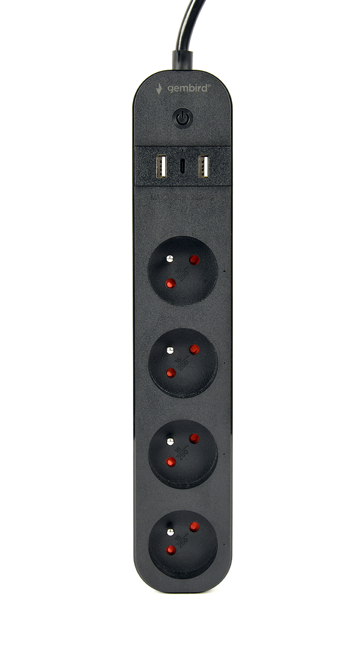 Slimme 4-voudige stekkerdoos met USB laadpoorten, zwart