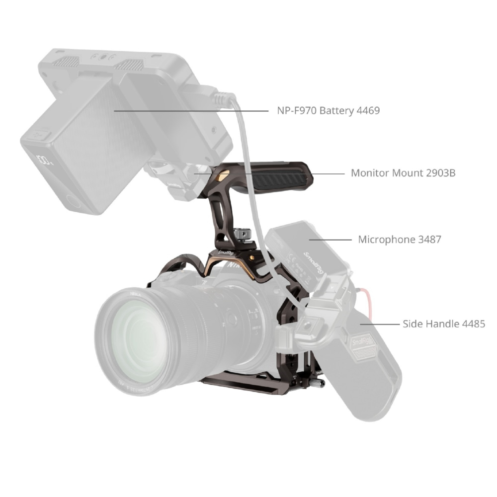 De SmallRig 5259 Night Eagle Cage Kit is een complete rig-oplossing voor Nikon Z5II, Z5, Z6, Z6II, Z7 en Z7II systeemcamera’s. Deze kit combineert de solide bescherming en bevestigingsopties van de Night Eagle Cage met een ergonomische top handle en een universele HDMI/USB-C-kabelklem, waardoor je direct klaar bent voor professionele videoproducties.