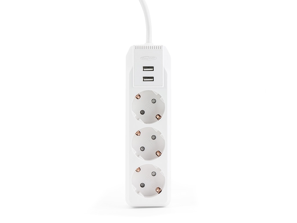 Gebruik de Caliber Stekkerdoos om apparatuur aan te sluiten op één plek! Je kunt meerdere apparaten tegelijkertijd opladen met deze verdeelstekker. Dit stekkerblok type F heeft drie contactpunten en twee USB ingangen. Het stekkerblok met USB heeft een vermogen van 2300 watt en een kabellengte van 2 meter. Hierdoor kun je dus al je apparatuur tegelijkertijd op dezelfde plek opladen. De USB hub is veilig te gebruiken door het vuurvaste omhulsel en de overspanningsbeveiliging en kinderbeveiliging.