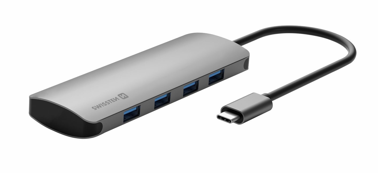 De 4 in 1 USB-C Hub Adapter van Swissten zorgt ervoor dat je meer mogelijkheden met je laptop hebt. Dankzij de 4 USB 3.0 poorten kan je het maximale eruit halen