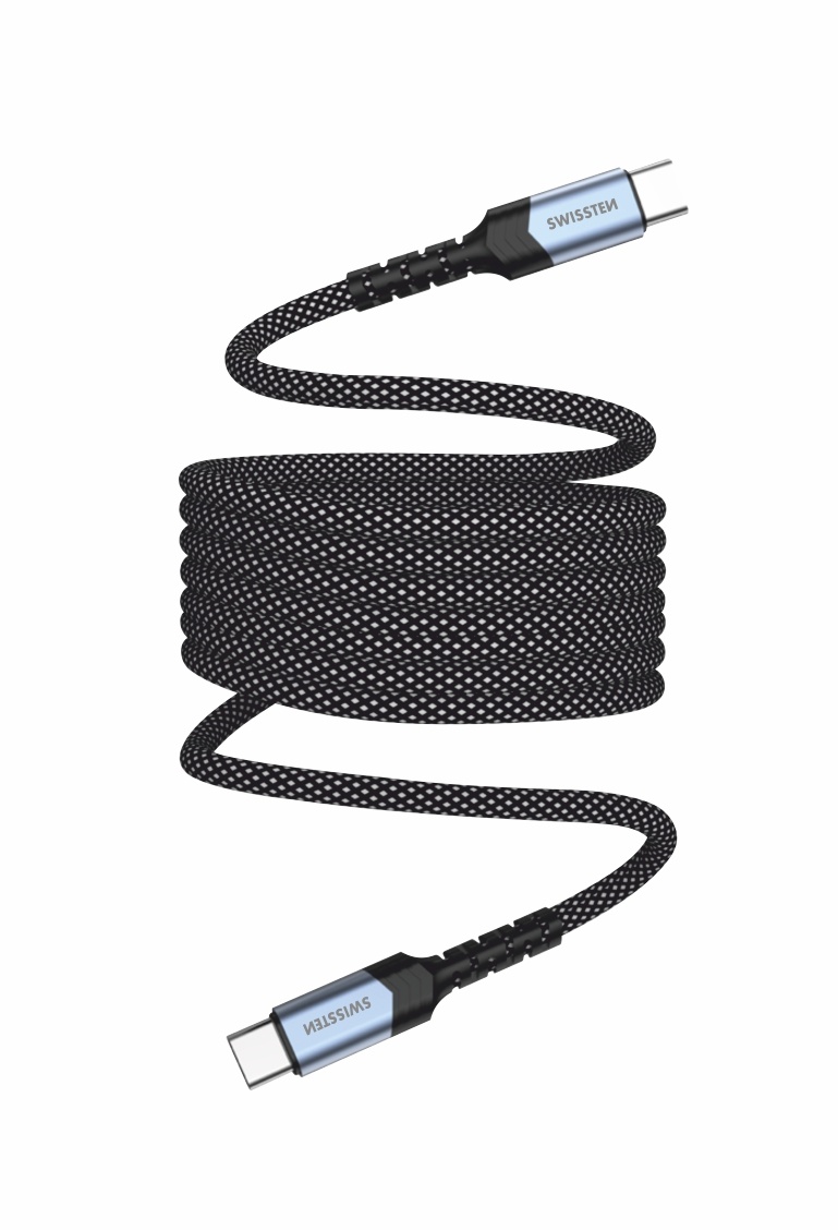 De Zwarte Magnetische Anti-Knoop USB-C naar USB-C van 100 centimeter is een gevlochten nylon kabel met een verstevigde behuizing rond de connectoren.