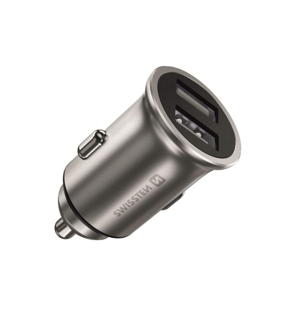 De zilveren Swissten Autolader met 2 USB poorten maakt het voor jou mogelijk om tijdens het rijden je telefoon probleemloos op te laden. De autolader heeft 2 USB poorten waardoor het mogelijk is om twee apparaten tegelijk te kunnen opladen.