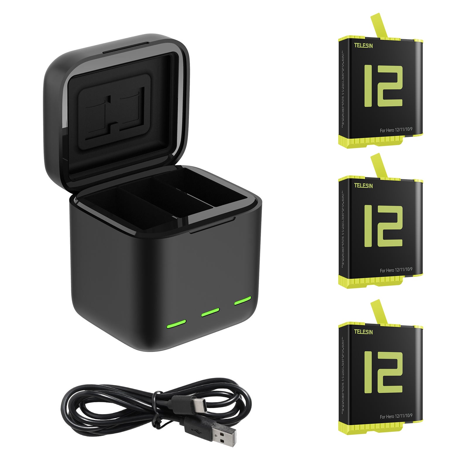 Gebruik jij je GoPro vaak voor langere tijd waardoor je meerdere batterijen nodig hebt? De Telesin Triple Battery oplaadbox voor GoPro met 3 batterijen is een ideale aanvulling als je alleen een GoPro-camera met de standaard meegeleverde accu hebt. De box wordt namelijk geleverd met 3 batterijen. De batterijen zijn geschikt voor GoPro Hero 12, 11, 10 en 9. Met ruimte voor maximaal 2 optionele Micro SD-kaarten en gelijktijdig opladen van drie 1750 mAh-batterijen ben je altijd klaar voor je volgende avontuur.