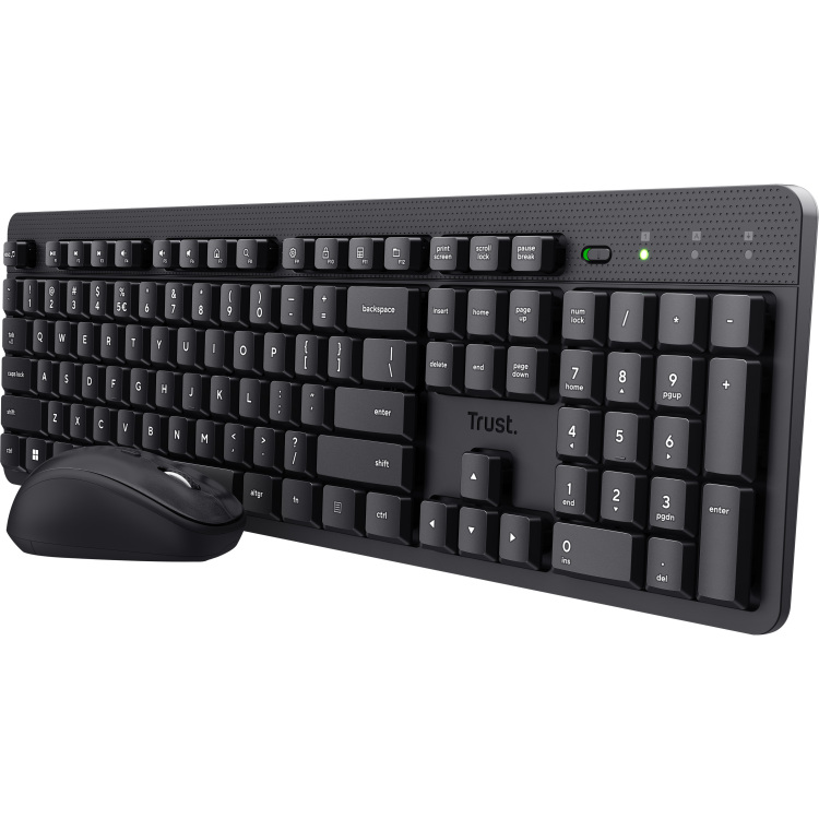 De stille toetsen en muisknoppen van de Ody II Stille draadloze toetsenbord- en muisset voorkomen dat jij en de mensen om je heen worden afgeleid. Geniet van comfortabel typen met zwevende, low-profile toetsen in een full-size layout en een verstelbare hoek op het toetsenbord. Gemakkelijk toegankelijke media- en sneltoetsen op het toetsenbord bieden slimme toegang met één druk op de knop. Het morsbestendige toetsenbordontwerp zorgt ervoor dat je zorgeloos kunt werken. De bijbehorende muis is voor linkshandig en rechtshandig gebruik en voorzien van een dpi-snelheidsknop (800-1600 dpi) voor comfort en nauwkeurige bewegingen. Met een betrouwbare draadloze verbinding met een bereik van maximaal 10 meter via één USB-ontvanger voor zowel toetsenbord als muis is het altijd mogelijk flexibel te werken en de energiebesparende aan/uitschakelaar op toetsenbord en muis verlengen de batterijduur.