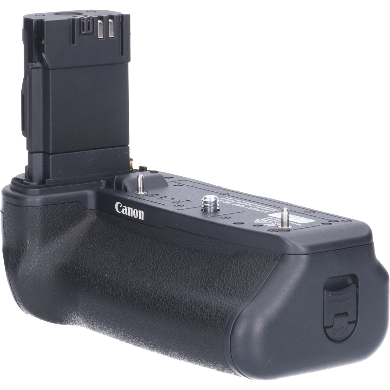 - Laad LP-E6NH- of LP-E6N-accu's op zonder ze uit de grip te halen.
