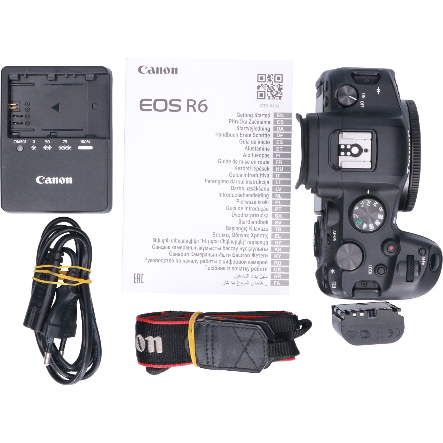 De EOS R6 wordt gevoed door een nieuwe en nog krachtigere LP-E6NH-accu, die ongeveer 14 procent meer capaciteit heeft dan de oude LP-E6N-accu. LP-E6NH-accu's kunnen worden opgeladen met de meegeleverde acculader of in de camera via de USB C 3.1-aansluiting, met Canon's PD-E1 voedingsadapter of een voedingsbron met voedingscapaciteit (PD). De BG-R10 battery grip is ook beschikbaar, waarin twee accu's tegelijk kunnen worden geplaatst voor langere gebruiksduur.