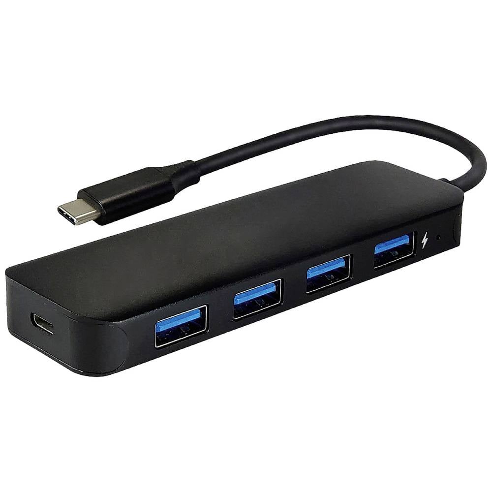 Met deze hub kunnen maximaal vier USB 3.0 / USB 3.2 gen 1 randapparatuur op de USB type C-poort van een PC worden aangesloten, vast aangesloten USB-kabel met type C-stekker voor de verbinding met de…
