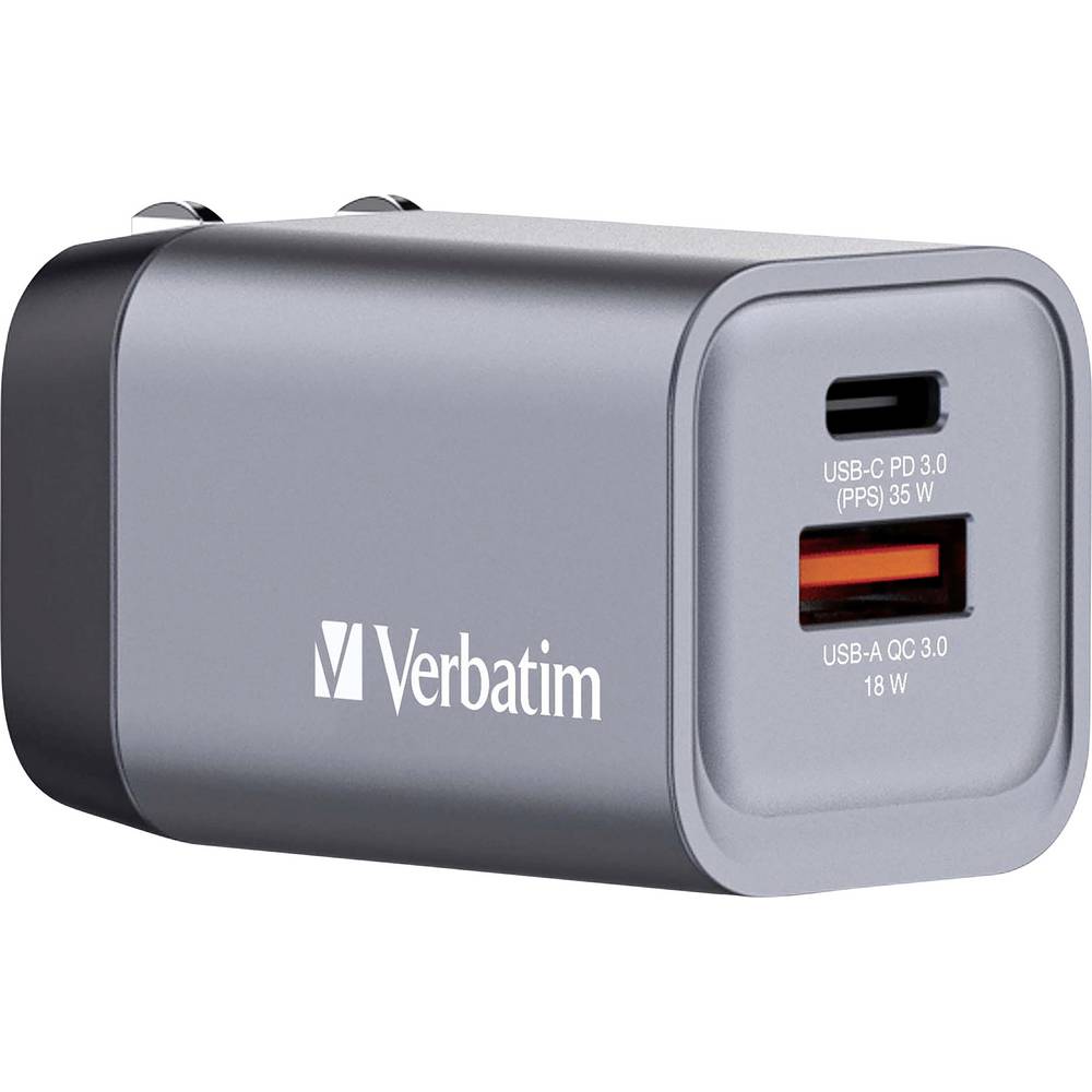 Verbatim Mini GaN Charger Reislader 70 W 1x USB-A, 2x USB-C USB PD 3.0, QC 3.0, QC 4+ Zwart Snellader, GaN, Met adapter voor Europa, Met adapter voor Verenigd