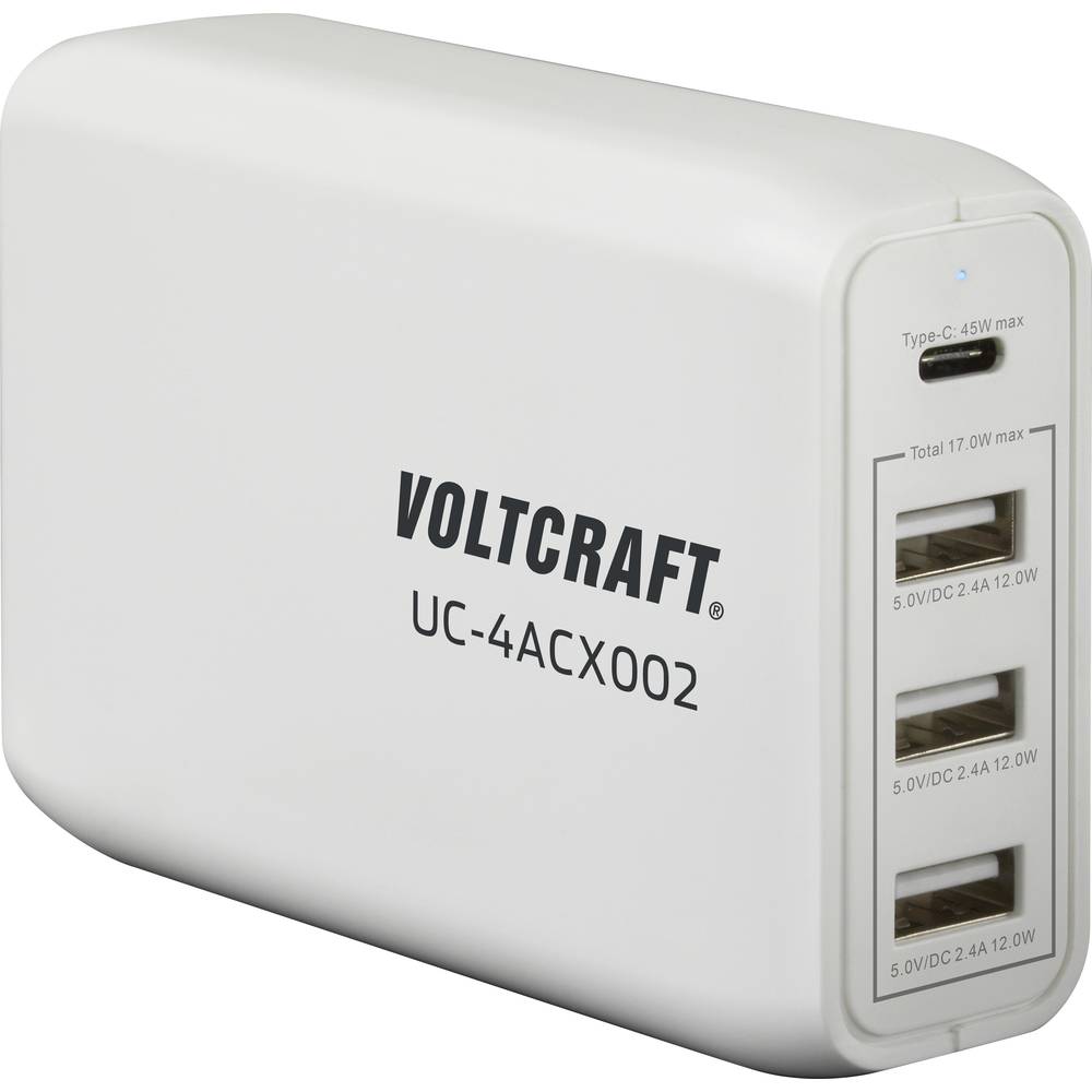 VOLTCRAFT UC-4ACX002 USB-oplader 62 W 1x USB-C, 3x USB-A USB PD Wit Binnen