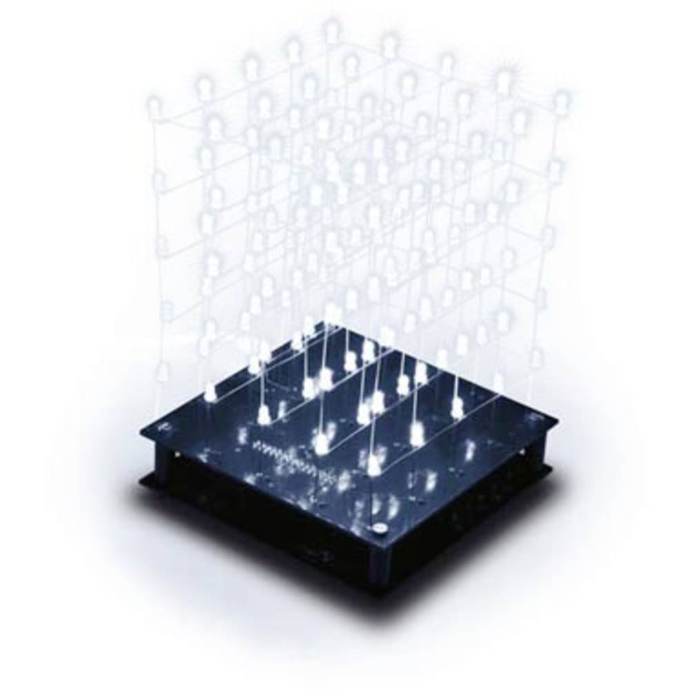 Met deze soldeerbouwset kunt u een LED-3D-kubus met 125 witte LED, voorgeprogrammeerde 3D-effecten, 5 dimniveaus en 4 overgangssnelheden solderen.