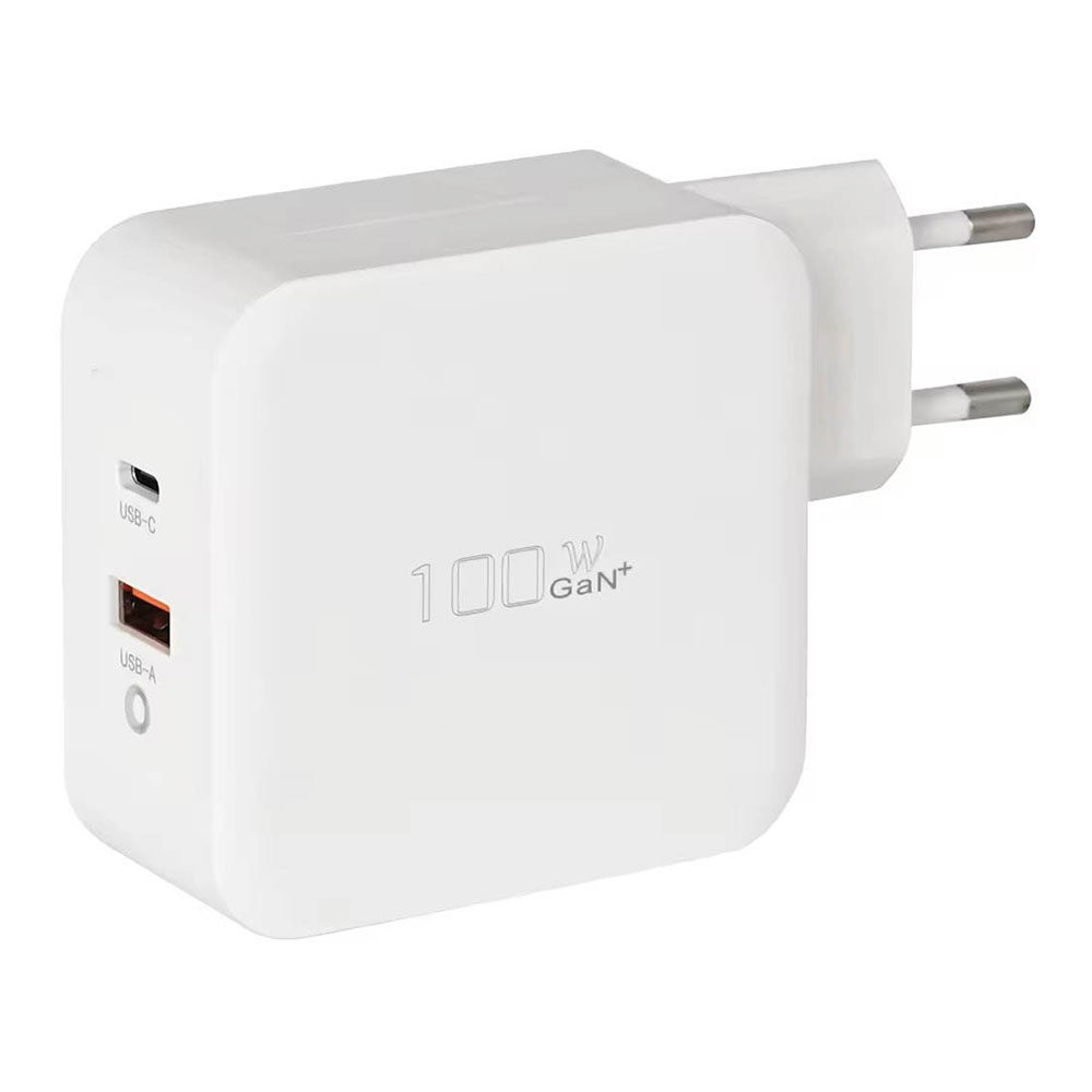 Wandoplader met 100W PD USB-C-uitgang en 5V/2.4A USB-A-uitgang